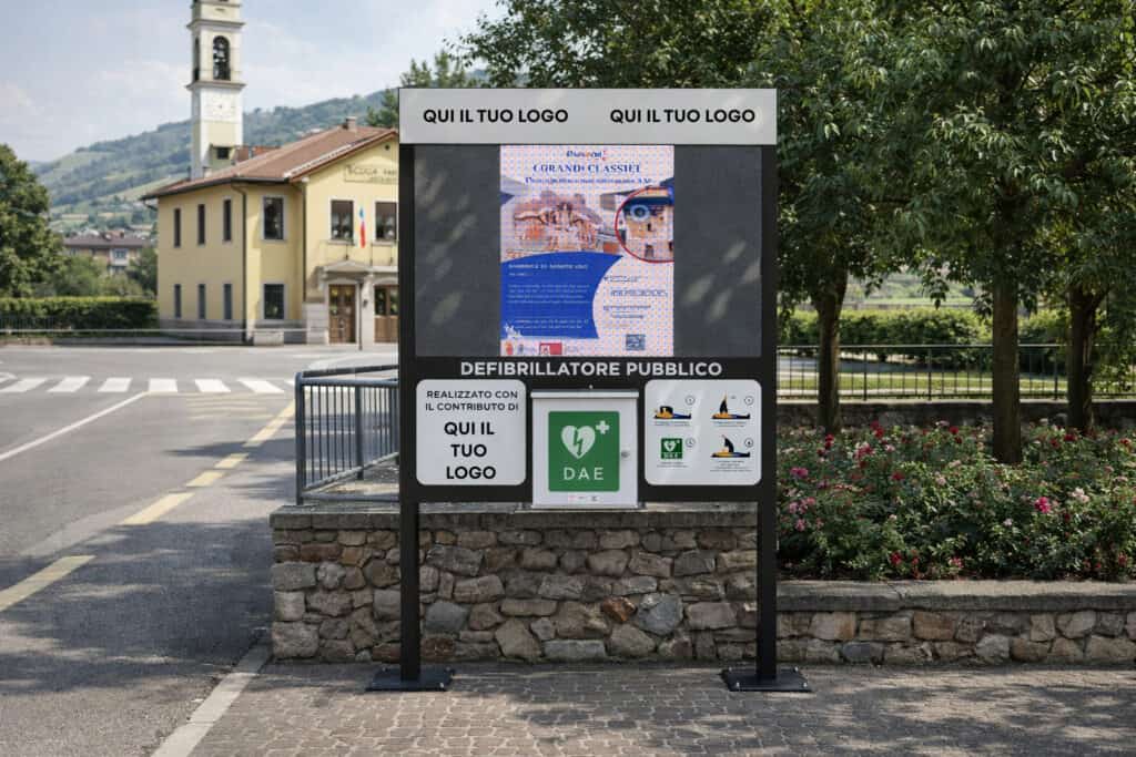 Portali DAE: arredo urbano con defibrillatore e schermo digitale, per sicurezza e comunicazione strategica