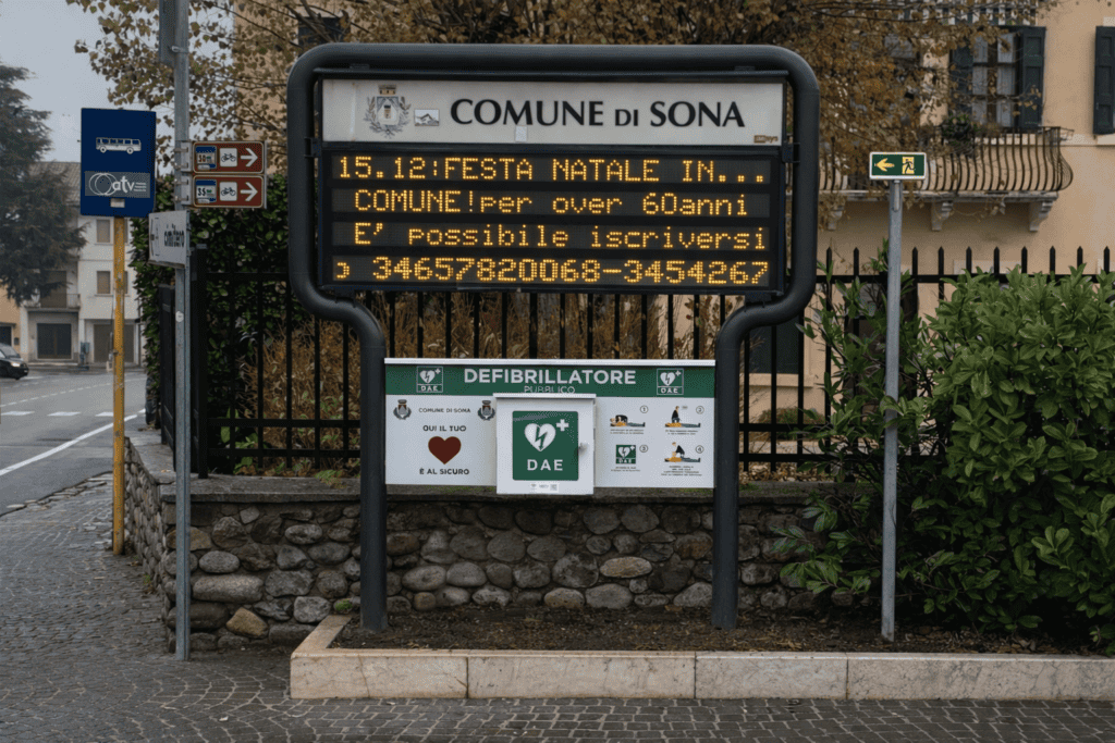 Progettiamo installazioni DAE per Comuni e amministrazioni, adattate a piazze, centri storici, impianti sportivi, stazioni e aree ad alta frequentazione. L’obiettivo è creare una rete di cardioprotezione visibile, accessibile e integrata nel territorio.
